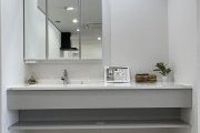 寝室のデザインには兎に角こだわりたいというお施主様の施工例です。ホテルのようなデザインで寝室に戻ってくる度にワクワクがとまらないと仰っています。リビングにはスタディルームを設けてお子様がリビングで勉強できるようにしています。家族が集まれる場を作りながらも個人スペースも意識した施工例となっています。