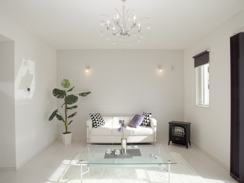 シャンデリアが素敵なお洒落なリビング。来客のお客様からの評価も上々でちょっと鼻が高くなります。